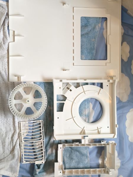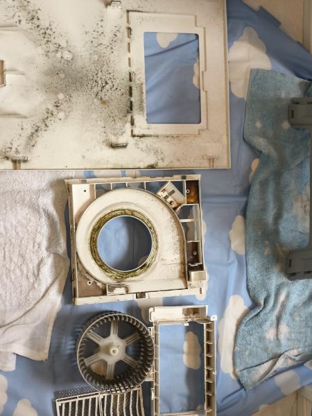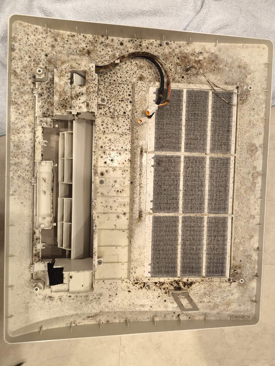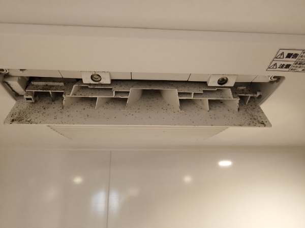 ファンに付着したホコリに黒カビ。こちらはファンをほとんど埋めちゃっています。