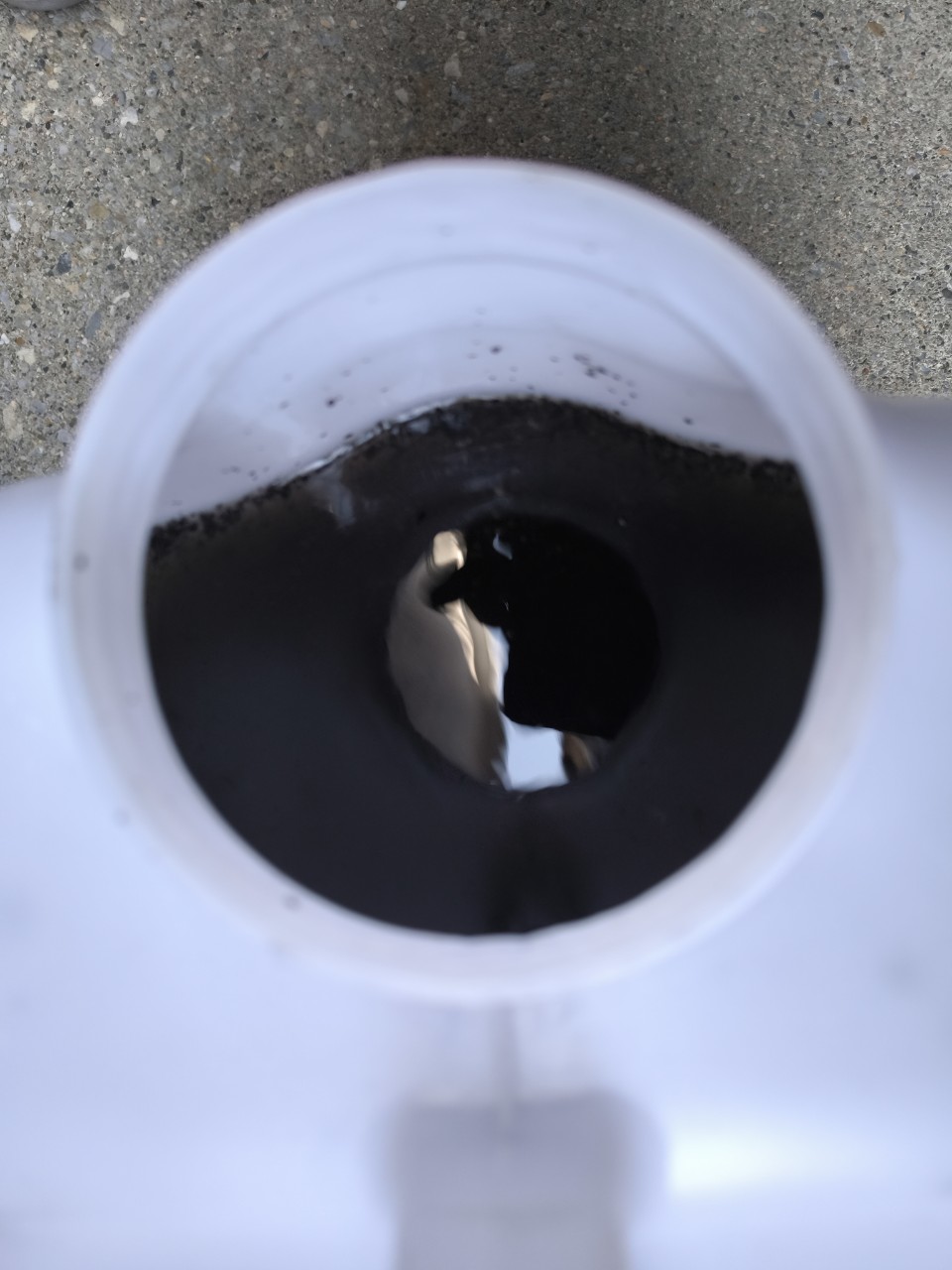 三枚目はアルミフィンに1回だけ高圧洗浄を掛けただけ。それでも違います。 汚水の写真は違う現場のですが、洗浄ではタンク右が一般的な汚水の量。汚れが厳しいと、左のタンクの位の汚水が出ます。これだけ汚水が出て、色が真っ黒。キッチン近くで8年以上エアコンクリーニングして無く、わんちゃん・猫ちゃん飼っていると確率が高くなります。