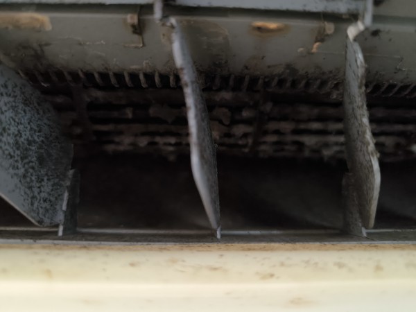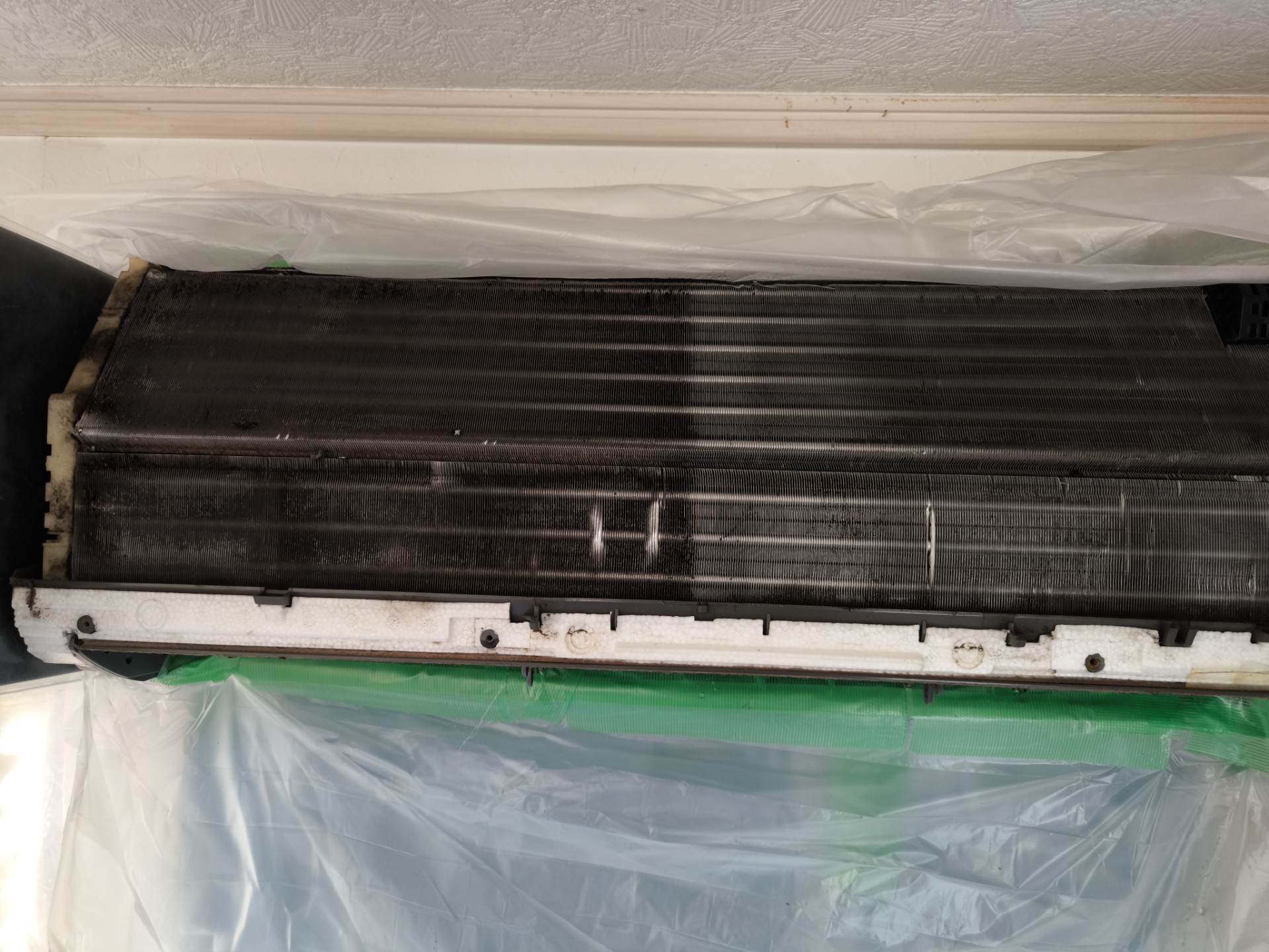 わんちゃんのいるおうちでした。 毛がアルミフィンの3分の2位を塞いでいました。